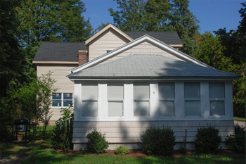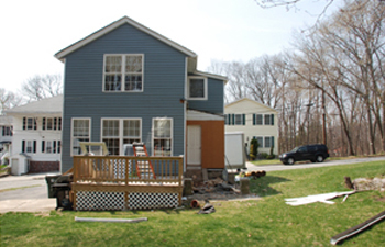 An addition was constructed over the entire garage and the main house. The small dormer was removed and replaced with a new dormer that extends across the full width of the structure from one side to the other.